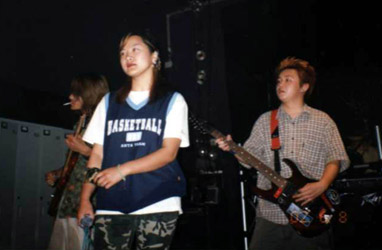 | 北京のバンド。2001年初、バンドを結成する。当時のメンバーは、張坤(Dr)・趙[丹彡](G)以外、流動的であった。半年ほど経て、音楽スタイルもポップスタイルとなり、メンバーも固定し、バンド名を叢林楽隊とした。メンバーは田威(Vo)・韓陽(リズムG)・趙[丹彡](リードG)・王卓(B)・張坤(Dr)。音楽スタイルの中に、テクノやラップなども含まれている。 数度の大きなライブを経て、星die公司との協力で、河南省鄭州でテレビ番組に出演する。 2002年初頃、王穎(女)(Vo)が加入した。2月8日、哈尼酒[ロ巴]でライブを行った。4月27日、彩色沙漠酒[ロ巴]でライブを行った。6月8日、彩色沙漠酒[ロ巴]でライブを行った。6月21日、豪運酒[ロ巴]で行われた“豪運酷夜−女性揺滾大革命!”に参加した。7月26日、豪運酒[ロ巴]でライブを行った。 |