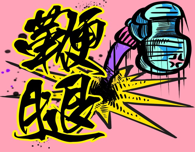 鞭腿楽隊 バンドのロゴ。(イラスト:重型音乐砸开新学期!“献祭夜” 石中剑主题 at 创矩、菠萝乐场PoloParty)