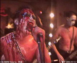 HATE(李超)(Vo)・NROCK(南山)(リードG)の2人しかいなかった。それは、なかなか一緒にバンド活動をしてくれる人が見つからなかったためである。中国式のエクストリームメタルを非常に嫌っている。9月、1曲ほどDEMO「evilthorn」を殉難楽隊のZUの協力でレコーディングするが、ドラムはいないため、ドラムマシーンを使用した。10月、SS(B)が加入する。11月、hao磊(赤旗楽隊)(リズムG)が加入した。 2002年3月、鄭勇(Dr)が加入し、基本的メンバーが揃った。4月、許允爲(G)が加入した。6月には、hao磊が脱退してしまう。6月、鄭勇が脱退したため、ドラムは再びドラムマシーンを使用することにした。ドラムマシーンのプログラミングは、許允爲が行っている。7月27日、老豪運酒[ロ巴]で行われた『重型音楽5』発売記念ライブに参加した。8月18日、老豪運酒[ロ巴]でライブを行った。 2003年1月24日、老豪運酒[ロ巴]でライブを行った。2月22日、老豪運酒[ロ巴]でライブを行った。3月、SSが仕事の関係でバンドを脱退した。そして、寨孝君(暴君之狂怒楽隊)(B)が加入し、メンバーは、DANI HATE(李超)(Vo)・NROCK(南山)(G)・許允爲(G&Drマシーン)・寨孝君(B)となった。 |