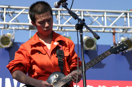 | 北京で活動するギターリスト。1981年生まれ。四川省自貢出身。16歳の時にバンドを結成する。1999年に上京し、北京迷笛音楽学校で勉強する。 2000年7月、液yang罐頭楽隊を結成し、ギターを担当する。 2001年秋、液yang罐頭楽隊は解散してしまう。2001年後半、AK-47楽隊に加入しギターを担当した。 2002年7月、液yang罐頭楽隊に再加入する。同年半ば、AK-47楽隊を脱退した。10月、潜水艇楽隊を結成し、ギターを担当した。 やがて、Haraxa楽隊や大喬小喬のバンドにも参加した。 2005年前半、液yang罐頭楽隊を脱退した。 2007年3月10日、成都の麻糖酒[ロ巴]でライブを行った。9月14日、成都の馬丘比丘珈琲館で瓷楽隊とともにセッションを行った。同年後半、潜水艇楽隊は、黄色潜水艇楽隊と改名した。 2009年頃、成都のTHE TROUBLE楽隊に加入した。1月16日、馬丘比丘珈琲館で李帯果とともにライブを行った。8月29日、馬丘比丘珈琲館でライブを行った。 |