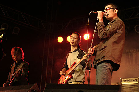 2003年10月1日、迷笛音楽節でのライブより 左から:虞洋・劉永斌・梵瑞 (撮影:YIREN)