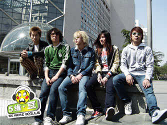 | 北京のバンド。2001年、尤奕(G)・独博(G)によって午極楽隊を結成した。のち、メンバー変更の際に穆偉(Dr)と王曉旭(B)が加入する。また、徐楊(女性)(Vo)が加入して2002年3月にバンド名を五維豆楽隊と改名した。メンバーは徐楊(Vo)・尤奕(リードG)・獨博(リズムG)・王曉旭(B)・穆偉(Dr)で、みな北京民族大学の学生である。 間もなくして、DEMOを製作した。4月から5月にかけて、統一冰紅茶“閃亮之星2002”大学生歌手コンテストに参加し、華北地区で3位となったほか、全国区決勝で12位に選ばれた。6月、北京農業大学校園芸術節の閉幕式に参加した。この時、黄征・彝人制造・果味VC楽隊と同じ舞台に立ち、好評を博した。12月、香港の“第十四届CASH”流行曲コンテストに参加し、最優秀演繹楽隊賞を獲得した。12月25日、北京鼎天文化伝播有限公司と契約した。 |