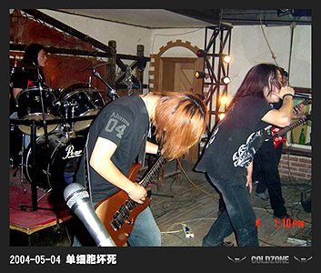| 北京のエクストリームバンド。2001年末結成。メンバーは李量(Vo)・米鵬(リズムG)によって結成した。 2002年からライブを行うようになる。同年、嚴月(リードG)や趙渤(Dr)が加入した。同年末、趙暉(B)が加入した。 2004年4月10日、老豪運酒[ロ巴]でライブを行った。5月4日、老豪運酒[ロ巴]でライブを行った。6月13日、新豪運酒[ロ巴]でライブを行った。7月3日、CD CAFEでライブを行った。7月24日、CD CAFEでライブを行った。 2005年、李蒙が加入した。同年、周永智(G)も参加したが、短い期間であった。1月22日、13CLUBでライブを行った。3月12日、13CLUBでライブを行った。4月30日、雲夢酒[ロ巴]で行われた反日ライブに参加した。8月12日、13CLUBでライブを行った。その後メンバーの状態などにより、バンドは活動を休止した。 |
