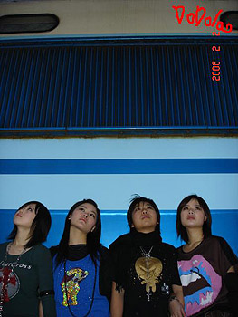 | 湖南省株洲のガールズバンド。2006年2月結成。メンバーは羅朶朶(Vo&G)・王馥[女青](G)・馮葉(葉子)(B)・周珍(珍寶)(Dr)。音楽スタイルはポップパンク。 3月25日、長沙の肆陸酒[ロ巴]で行われた“湖南首届揺滾音楽節”に参加した。6月3日、湖南工業大学科技学院財校大礼堂でライブを行った。12月30日、長沙の動感酒[ロ巴]でライブを行った。12月、葉子が学業のためにバンドを脱退した。そして、羅朶朶がボーカル兼ベースを担当することになった。 2007年1月6日、長沙の肆陸酒[ロ巴]で行われた“拯救革命同志全国連合義演(肥狼のためのチャリティーライブ)”に参加した。4月、言小言(リードG)が加入した。4月14日、長沙の動感酒[ロ巴]でライブを行った。4月15日、長沙の肆陸酒[ロ巴]で行われた愚人船楽隊のライブの前座を務めた。4月28日、長沙の肆陸酒[ロ巴]で行われたTEN BOTTLES HEART楽隊のライブの前座を務めた。5月6日、武漢の武漢互動娯楽基地で行われた“2007武漢首届愛与和平現代音楽節”に参加した。8月1日、広西チワン族自治区柳州の馬鞍山天後宮人防舞庁で行われた“第5界柳州原創音楽節”に参加した。9月15日、長沙の動感酒[ロ巴]で行われた顛狂収音機楽隊のライブの前座を務めた。10月1日、常徳の金鑽広場C区3階で行われた“誘導社滑板店 第六届街頭文化節”に参加した。10月12日、長沙の肆陸酒[ロ巴]でライブを行った。11月10日、長沙の動感酒[ロ巴]で行われた“湖南青年音楽節”に参加した。12月30日、長沙の肆陸酒[ロ巴]でライブを行った。 |