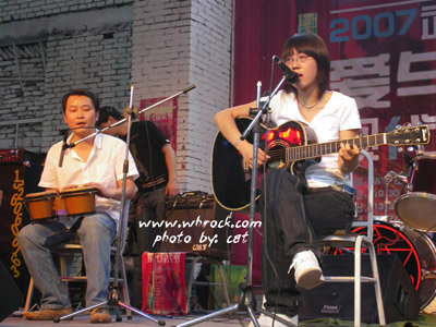 | 湖南省株洲のバンド。2006年夏結成。メンバーは陳嘉[シ瑩](詞曲&Vo)・王磊石(プロデューサー&編曲)。12月24日、長沙の肆陸酒[ロ巴]でライブを行った。 2007年1月6日、長沙の肆陸酒[ロ巴]で行われた“拯救革命同志全国連合義演(肥狼のためのチャリティーライブ)”に参加した。3月30日、湖南大学でライブを行った。4月14日、長沙の動感酒[ロ巴]でライブを行った。5月5日、武漢の5拍酒[ロ巴]でライブを行った。5月6日、武漢の武漢互動娯楽基地で行われた“2007武漢首届愛与和平現代音楽節”に参加した。5月25日、長沙の肆陸酒[ロ巴]で行われた張[イ全]のライブの前座を務めた。6月15日、長沙の肆陸酒[ロ巴]でライブを行った。6月16日、湘潭雨湖公園湖園広場でライブを行った。8月30日、長沙の動感酒[ロ巴]で行われた小民是個機器人楽隊のライブの前座を務めた。10月6日、厦門の第六晩珈琲館でライブを行った。10月、インディーズオムニバス『蜂蜜与白色桜草』に曲が収録された。10月26日、長沙の可可清[ロ巴]で行われた周雲蓬のライブの前座を務めた。10月31日、長沙の肆陸酒[ロ巴]で行われたアメリカのブルースフォーク歌手・Brandon Thomasのライブの前座を務めた。11月10日、長沙の動感酒[ロ巴]で行われた“湖南青年音楽節”に参加した。 |