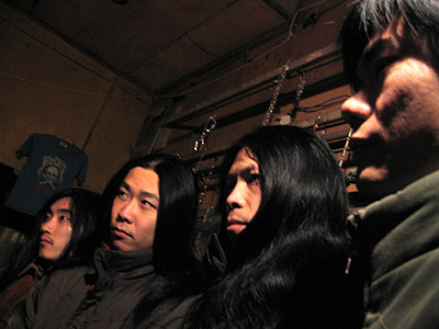 | 江西省南昌のバンド。2005年10月結成。メンバーは李俊超(Vo)・邱劍化(元・異端楽隊)(G)・曾凱鋒(G)・譚冲(B)・鐘然(Dr)。音楽スタイルはスラッシュメタル。 10月22日、黒鉄酒[ロ巴]でライブを行った。10月29日、黒鉄酒[ロ巴]でライブを行った。11月8日、黒鉄酒[ロ巴]でライブを行った。12月10日、黒鉄酒[ロ巴]でライブを行った。12月17日、黒鉄酒[ロ巴]でライブを行った。12月31日、黒鉄酒[ロ巴]でライブを行った。 2006年1月1日、黒鉄酒[ロ巴]でライブを行った。1月14日、黒鉄酒[ロ巴]でライブを行った。2月18日、黒鉄酒[ロ巴]でライブを行った。4月1日、黒鉄酒[ロ巴]でライブを行った。10月、AreaDeath Productionsと契約した。10月28日、黒鉄酒[ロ巴]でライブを行った。 2007年1月20日、黒鉄酒[ロ巴]でライブを行った。6月16日、黒鉄酒[ロ巴]でライブを行った。8月25日、黒鉄酒[ロ巴]でライブを行った。10月27日、黒鉄酒[ロ巴]でライブを行った。12月8日、武漢のVOX酒[ロ巴]でライブを行った。12月24日、黒鉄酒[ロ巴]でライブを行った。 |
