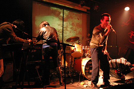 | 南京のバンド。2007年8月、Tech tech no no no楽隊が改名した。メンバーは李chen(G&Dr)・魯白(女性)(元・Tech tech no no no楽隊)(Vo&Dr)・ka列寧(元・Tech tech no no no楽隊)(G)。 9月16日、古堡酒[ロ巴]で行われたフランスのバンド・Le Singe Blancのライブの前座を務めた。10月、薩仁(チベット族)(B)が加入し、4人編成となった。10月26日、古堡酒[ロ巴]で行われた寂寞・夏・日楽隊のライブの前座を務めた。11月11日、古堡酒[ロ巴]で行われた弥勒唱片の“mini-showcase”ライブに参加した。11月16日、古堡酒[ロ巴]で行われたSNAPLINE楽隊のライブの前座を務めた。11月24日、蘇州の後街酒[ロ巴]でライブを行った。12月1日、合肥の花童酒[ロ巴]でライブを行い、“mini-showcase”ツアーが終了となった。12月2日、古堡酒[ロ巴]で行われた七月十六楽隊の1stDEMO EP発表会にゲスト出演した。12月7日、古堡酒[ロ巴]で行われたPK14楽隊のライブの前座を務めた。12月23日、古堡酒[ロ巴]で行われたアメリカのバンド・EX MODELSのライブの前座を務めた。 |