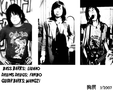 DOGS」とも記載されることもある。中国語では「狗[尸/穴]楽隊」。メンバーは王梓(Vo&G)・劉昊(Vo&B)・范博(JOY SIDE楽隊)(Dr)。音楽スタイルは70年代末から80年代初にかけてのハードコアで、germs、circle