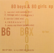 | 2 | Teenage Sota | 『B6X』の曲名は「teenage sofa (clubbing mix)」 | 5 | Pussy Cop Black <Psycho MIX> | |