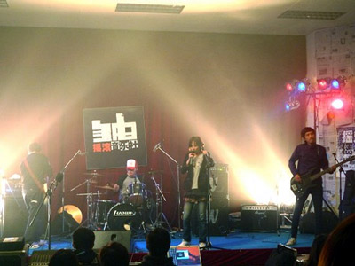 | 上海のバンド。メンバーはY楓(女性)(Vo)・苗老五(G)・平脚(B)・老K(Dr)。 2009年10月1日、現場酒[ロ巴]威海店でライブを行った。10月23日、現場酒[ロ巴]威海店でライブを行った。11月15日、育音堂でライブを行った。11月17日、上海外国語大学3教楼456教室でライブを行った。12月12日、育音堂でライブを行った。12月12日、[艸/止]江夢工場でライブを行った。 |
