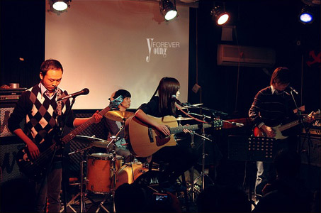 | 上海のバンド。2010年結成。メンバーは蛤蟆(重結晶楽隊)(女性)(Vo)・FISH(0210楽隊)(G)・白菜(SEVENTY-SEVEN楽隊)(B)・老范(甜品店楽隊)(Dr)。 2010年2月6日、HouseTZでライブを行った。3月5日、育音堂でライブを行った。3月14日、育音堂でライブを行った。 |
