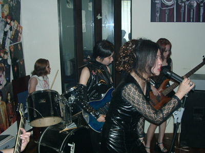 | 上海のビジュアル系ガールズロックバンド。2002年6月結成。メンバーはSaya(G)・[王英][王英](サポートG)・犬爻(B)・Kara(Dr)・[日/咎][火華](yugi)(Key)。犬爻とKaraは双子である。7月、薫紫(Vo)が加入し、バンドが正式に結成となった。 8月4日、視覚系バー・NOVAで初ライブを行ったが、まだ日本のバンドのカバーしか演奏できなかった。その後、杭州へ行き、ビジュアルロック団体主催のライブに参加した。この時、Emmeがキーボードとしてサポートを務めた。やがて、Emmeはギターリストとして加入し、ツインギターとなった。9月21日、哈雷酒[ロ巴]で行われたCOS72度ROOMのイベントに参加した。この後、Emmeが脱退した。11月、ビジュアル系ロック雑誌『界音』VOL.19でバンドが紹介された。その後、“桜花大戦3上海動漫聖誕遊”に参加した。このイベント終了後、Sayaが脱退し、バンドは活動休止となる。 当面は日本のバンドをカバーすることで精一杯であり、カバーしていく事でバンドのスタイルが形成されていくと考えている。 |