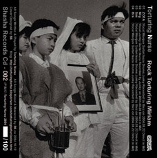 Deeのリマスタリングバージョンとなっている。 ・今年の5月、激烈ギター・キーボードの爆音ノイズ2曲入り1stアルバムをリリースした後、2人の女性メンバーが加わり、ナースコスチュームと新聞紙ドレスで強烈なパフォーマンスを繰り広げ話題を呼んだ上海ノイズ・ユニット"Torturing Nurse"が、早くも2ndアルバムをリリースした。アルバムジャケットは、"揺滾"を葬り、反揺滾志士としてノイズを貫いていこうとするメンバー4人を表しているという。限定100枚リリース(解説:Super Sonic China)。 |