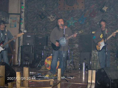 | 河北省唐山のバンド。1999年前後に結成。かつて別な奇妙な名前であったが、2001年、老子楽隊にした。音楽スタイルはグランジ。 2001年11月、メンバーは博偉(Vo)のみで、他のメンバーを募集中であった。 2002年6月8日、隠痛楽隊排練室で行われた隠痛楽隊“告別唐山”ロックライブに参加した。 2004年12月24日、PLAYER倶楽部でライブを行った。 2005年10月29日、後生代酒[ロ巴]でライブを行った。 2006年のメンバーは、博偉(博二)(Vo&G)・張立軍(老五)(G)・金子(B)。4月1日、河北省邯鄲の藍島酒[ロ巴]で行われた逆耳楽隊『濁化』発表会兼新鋭女性作家ka生詩集『路上的人都有把槍』サイン会に参加した。7月22日、青年倶楽部でライブを行った。その後メンバーは、博偉(Vo&G)・金子(B)・崔彬(B)・英傑(女性)(Dr)となった。11月3日、青年倶楽部でライブを行った。 |