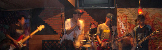 | 武漢のパンクバンド。紅蜘蛛楽隊が改名した。メンバーは林文華(Vo&G)・賀捷(Vo&G)など。 2003年前半、バンド活動が停止となった。 2003年後半になり、SK黨楽隊はバンド活動を再開した。9月6日、7&7酒[ロ巴]で活動再開後の初ライブを行った。この時、胡娟(Dr)がサポートを務めた。11月、彭啓鵬(蓬蓬)(元・脾気派楽隊)(Dr)が加入した。11月29日、7&7酒[ロ巴]でライブを行った。12月20日、7&7酒[ロ巴]で地下嬰兒楽隊と共にライブを行った。 2003年末頃になり、JACKASS110楽隊と改名した。 |