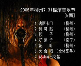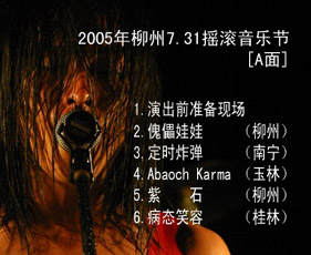 | 2005年7月31日、広西チワン族自治区柳州で行われた“第三届柳州731原創音楽節”の模様をVCD化したもの。バンドの活動場所の記載が一部間違っている。AとBの2枚組で、当初は別々でも発売されたが、のちにセット販売だけとなった。柳州の座標零肆琴行で購入することができる。 |