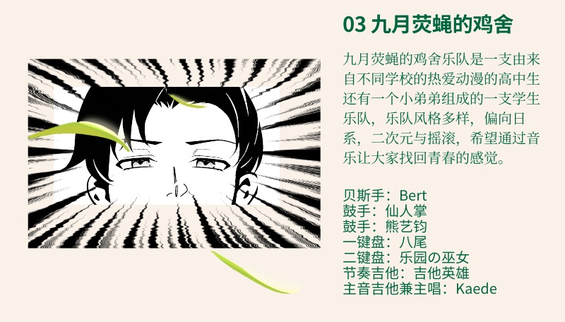 九月熒蝿的鶏舎楽隊 2023年8月8日のライブポスターより。(写真:【Tue 8.8】江湖东亿 | 一场融合音乐会--“去看星光” | 震撼来袭!!、embracing2023、Embracing音乐会)