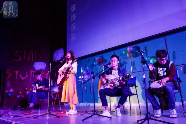 蛋餅楽隊 2017年10月12日のライブ。(写真:无畏风暴,闪耀青春——记2017级上海海事大学外国语学院迎新晚会、上海海事大学领航学生记者团)