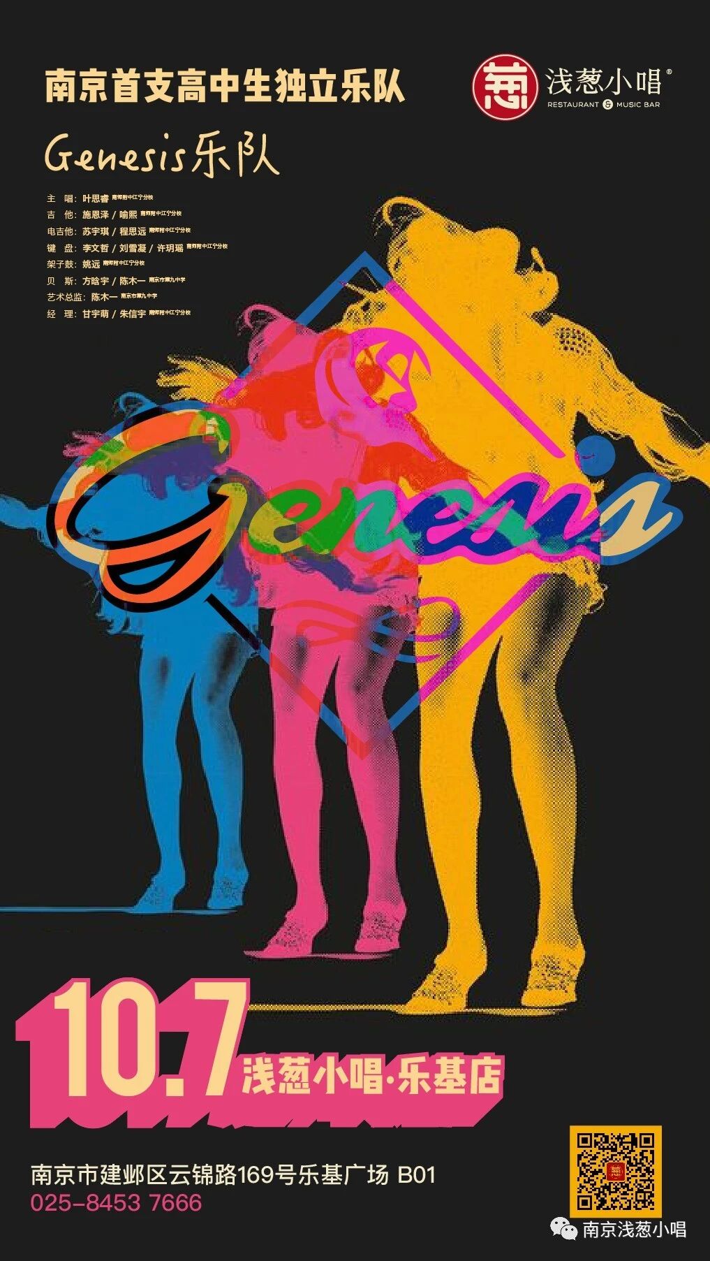 Genesis楽隊(南京市) 2018年10月7日のライブポスター。(イラスト:高中生都燥起来了,你呢?、葱小妞、南京浅葱小唱)