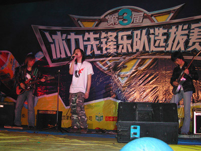 眠楽隊(南寧市) 2004年4月、康師傅冰紅茶第三届冰力先鋒楽隊選抜賽での写真。(写真:空谷校園)