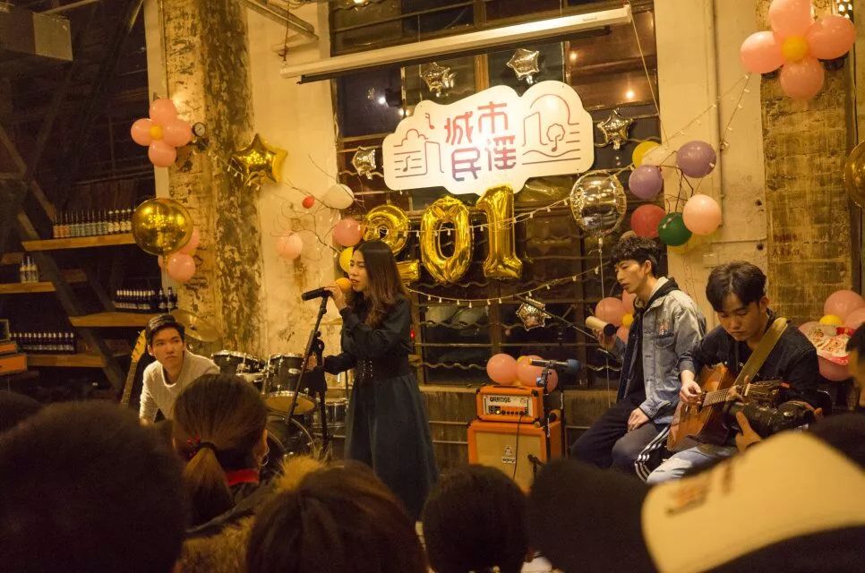 末班車楽隊(株洲市) 2017年12月31日のライブ。(写真:燃爆全城!声色艺术工厂城市民谣跨年音乐party带你直击现场!、韵动株洲)