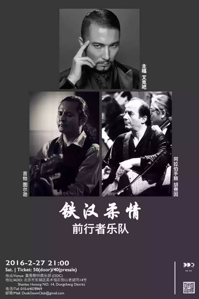 前行者楽隊 2016年2月27日のライブポスター(新)。(写真:2月27日 DDC【铁汉柔情 · 前行者乐队】、红杏、黄昏黎明俱乐部)