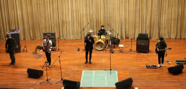 The King-Lion楽隊 2016年12月10日のライブ。(写真:【超人气乐队】2016陕西省大学生流行乐队大奖赛,选出你的爱、鱼化龙青年)