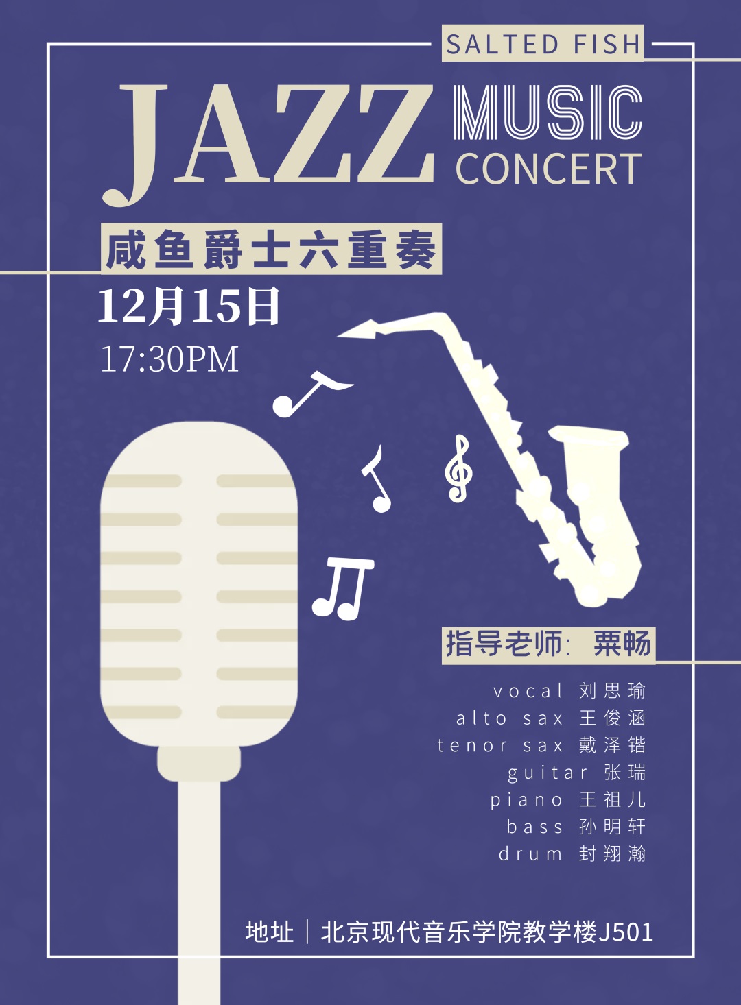 咸魚爵士六重奏楽隊 バンドのロゴ。(イラスト:2021年爵士乐学院期末汇报音乐周、北音爵士院)
