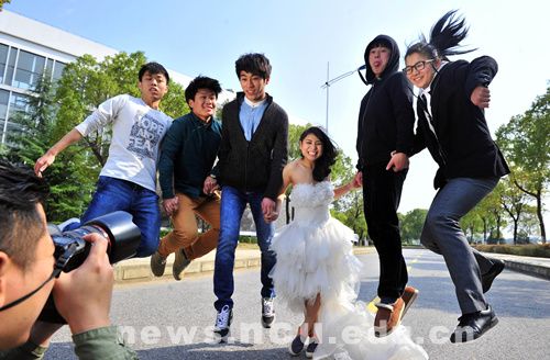 星火燎原楽隊 2014年4月、娜娜(左から4番目)と一緒に撮影。(撮影:李蕊・岳霊珊・王小慶、写真:NCU的心星之火、南昌大学新闻网)
