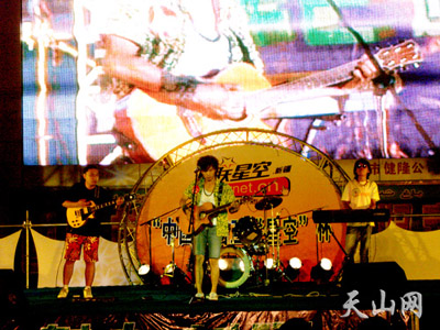 星空BUS楽隊 2006年8月11日のライブ。(写真:天山網、天山網直播MV網絡電視大賽“緑色通道資格賽”(三))