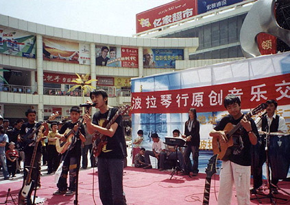 雪狼楽隊(喀什市) 2005年5月7日のライブ。(写真提供:波拉音楽網)