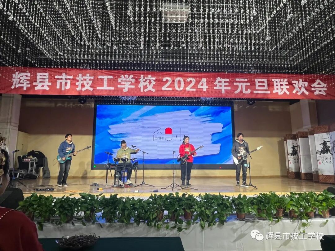 子時楽隊(輝県市) 2023年12月28日のライブ。(写真:辉县市技工学校2024年元旦联欢晚会、辉县市技工学校、辉县市高级技工学校)