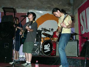- 2002年6月7日 上海市 挂二音楽工場 練習曲である痩人楽隊の「离婚」を演奏、ボーカルは張紹宇、ドラムは女性