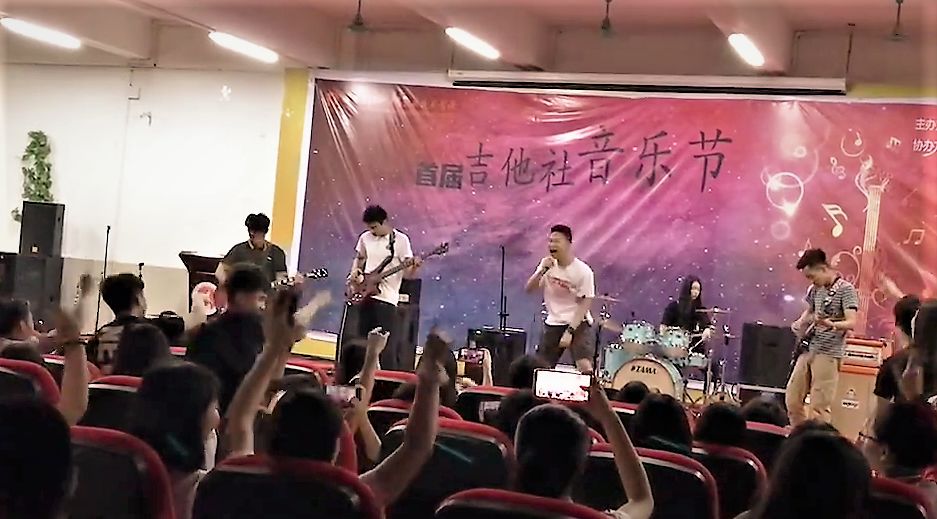 爆米花楽隊(広州市) 2018年5月10日のライブ。(写真:回顾一下High爆全场的首届音乐节!、伟子哥、省经贸都在说)