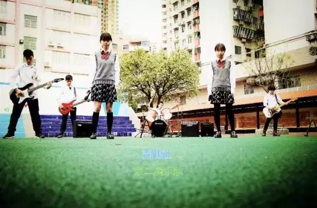 不倒翁楽隊(広州市緑翠現代実験学校) 2017年の写真。(写真:新起的摇滚之秀!?听说这群高中生唱起歌来完全屌炸天!!、地王广场)