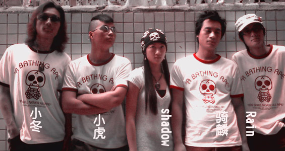 全速楽隊(深圳市) 2006年の写真。左から:小冬・小虎・Shadow・騎麟・Rain。(写真:深圳全速楽隊)