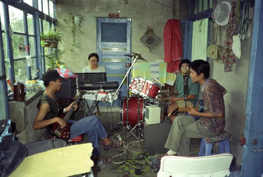 四平電声青年小楽隊 部屋での練習風景。(写真:四平中年、包爷、包爷饿了)