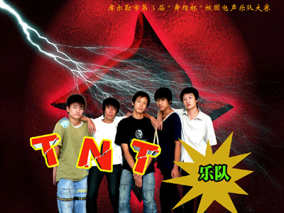 TNT楽隊(庫尓勒市) 2005年7月16日のライブ参加バンドの宣伝用写真。(写真:回歸、楼蘭音楽交流)