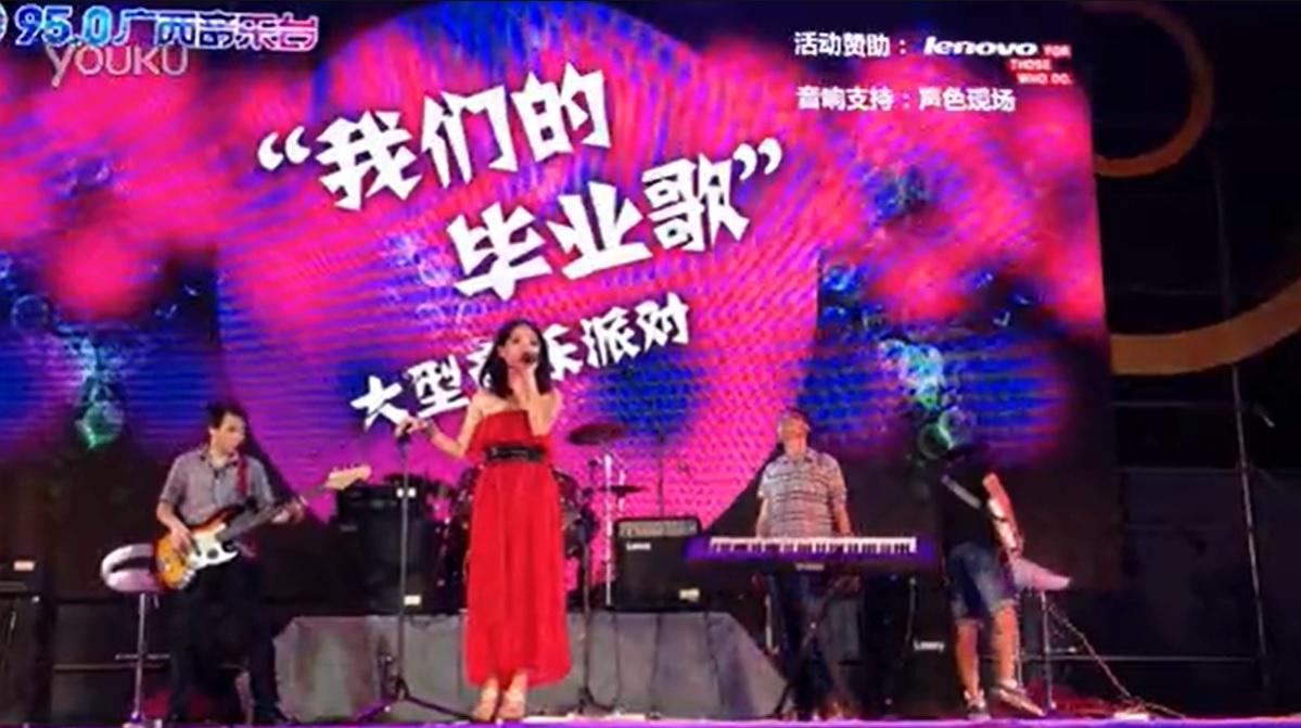 拖延症楽隊(南寧市) 2013年のライブ。(写真:广西大学拖延症乐队3 950【我们的毕业歌】、咳咳pkf、优酷)