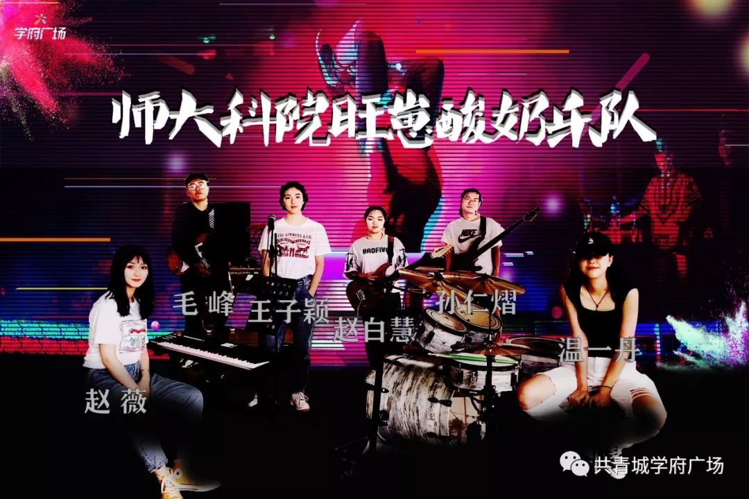 旺崽酸奶楽隊 2019年の写真。(写真:共青城市第二届大学生音乐艺术节邀请函、共青城学府广场)