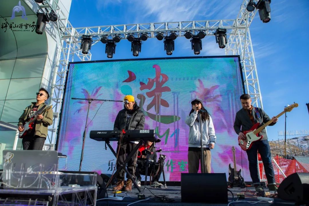 野卡峡楽隊 2019年12月14日のライブ。(写真:2020跨年Party |将军山跨年夜|电音|乐队|啤酒|连嗨两天!、阿勒泰市将军山滑雪场)